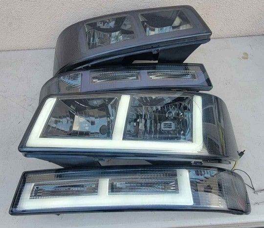 Set of Smoked LED DRL Headlights Switchback 03-14 Chevy Express/Express 1500 03-23 Express/ Savana 2500 and 3500 09-22 Express/ Express 4500 Fits Models with Composite Headlights Only; Does NOT Fit Sealed Beam Headlight Models Se Habla Español