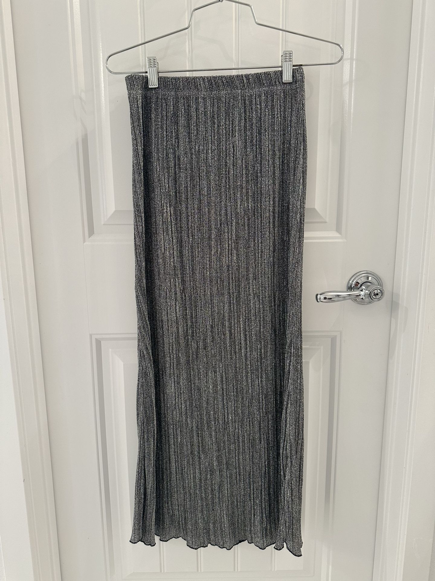 Long Stretchy metallic skirt. You can’t tell in the photos but it’s a very sparkly skirt. One size. Never worn.