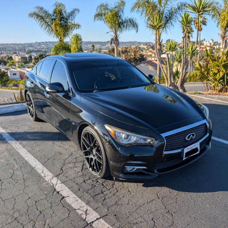 2015 Infiniti Q50 with the 3.7L which was the last year they stopped making it. 154000 miles. The torque is excellent. Has not had mods installed but doesn't need much mods to get it to compete with hellcats if you decided to. I believe in transparency, the car has a Salvage title due to accident in the rear bumper in which it did not cause any issues. The car needs some paint work due to clear coat drying out in some area such as the trunk & rear passenger quarter panel. Driver's seat is stuck and does not adjust Could use some brake rotors since they are rusty. Some curb rash on the edge of the rims. Other than that, the car runs great. The car was not driven recklessly, nor was it daily driven.