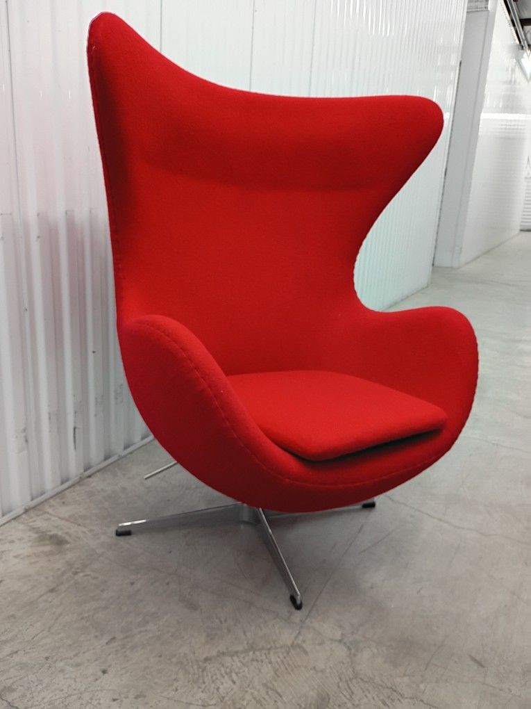 Arne Jacobsen Style Egg Chair, Mid Century Modern Style, Red Wool, Aluminum Swivel/Tilt Base