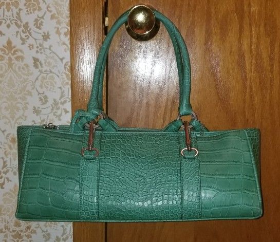 NEW DESIGNER GENUINE LEATHER EXPANDABLE PURSE ALL GENUINE LEATHER NEW JOY MANGANO CROCO/ GENUINE LEATHER SATCHEL WITH. SEPARATE ADJUSTABLE. LEATHER STRAP., Used as OVER SHOULDER OR CROSSBODY PURSE ZIPPERED CLOSURE LOTS OF INNER COMPARTMENTS AND ZIPPERED COMPARTMENTS FOR ORGANIZING EVERYTHING ⚘(Click " see more below)⚘ Converts to shoulder bag, matching long shoulder strap included, inside purse, for use as shoulder bag, &/or crossbody . It unlatches to expand to huge tall tote. Great if you're out shopping, on vacation, traveling doing errands & need more room, converts to a talk tote instantly! Just unhook hardware (2) on front and (2) on back. (It's three purses in one!) 3 in 1 Lots of inside compartments. Beautiful sparkling hardware, metal feet. Sparkling crystal jewelry decorative embellishment (worth more than $90 alone ) and black Joy Mangano protective dust bag included. 💎Includes sparkling crystal jewelry embellishment 💎Includes leather tassel 💎Includes leather key chain 💎ALL Genuine Leather 💎Zipper closure for security 💎Colors available are Black(SOLD) 💎Colors available are Green (available) 💎carry handle purse 💎long strap to change to shoulder bag /crossbody 💎expands to large bag either carry or shoukder/crossbody Total value over $250 SPECIAL WEEKEND SALE Asking only $85🌹🌹 Matching wristlet/sm purse/wallet available in Green or Black for only $55 🌹🌹 Cash only. Pick up at Chicago police station inside lobby. Please browse my other unique posted items