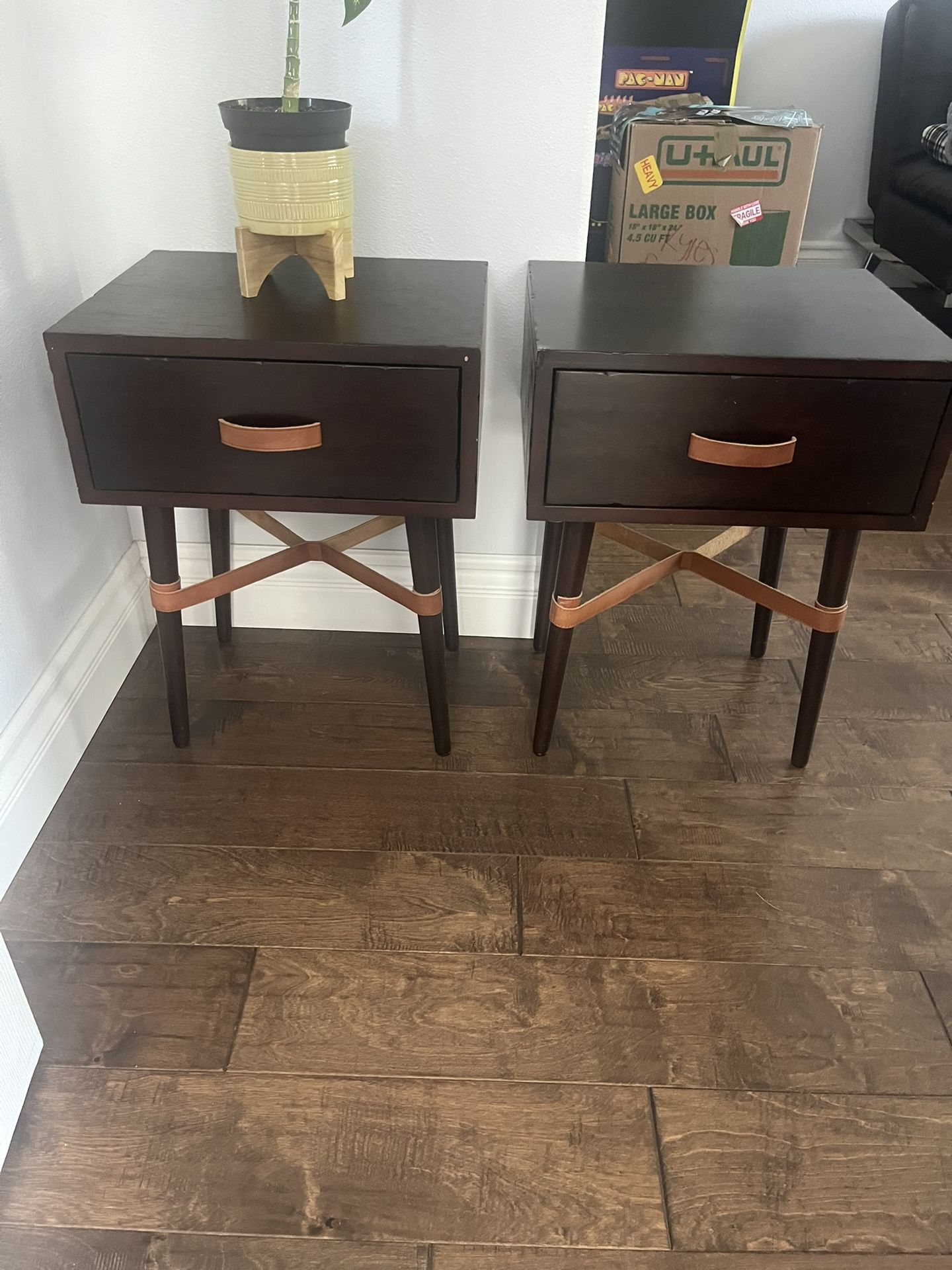 2 solid wood night stand Leather handles 24’ X 18’ X 15’