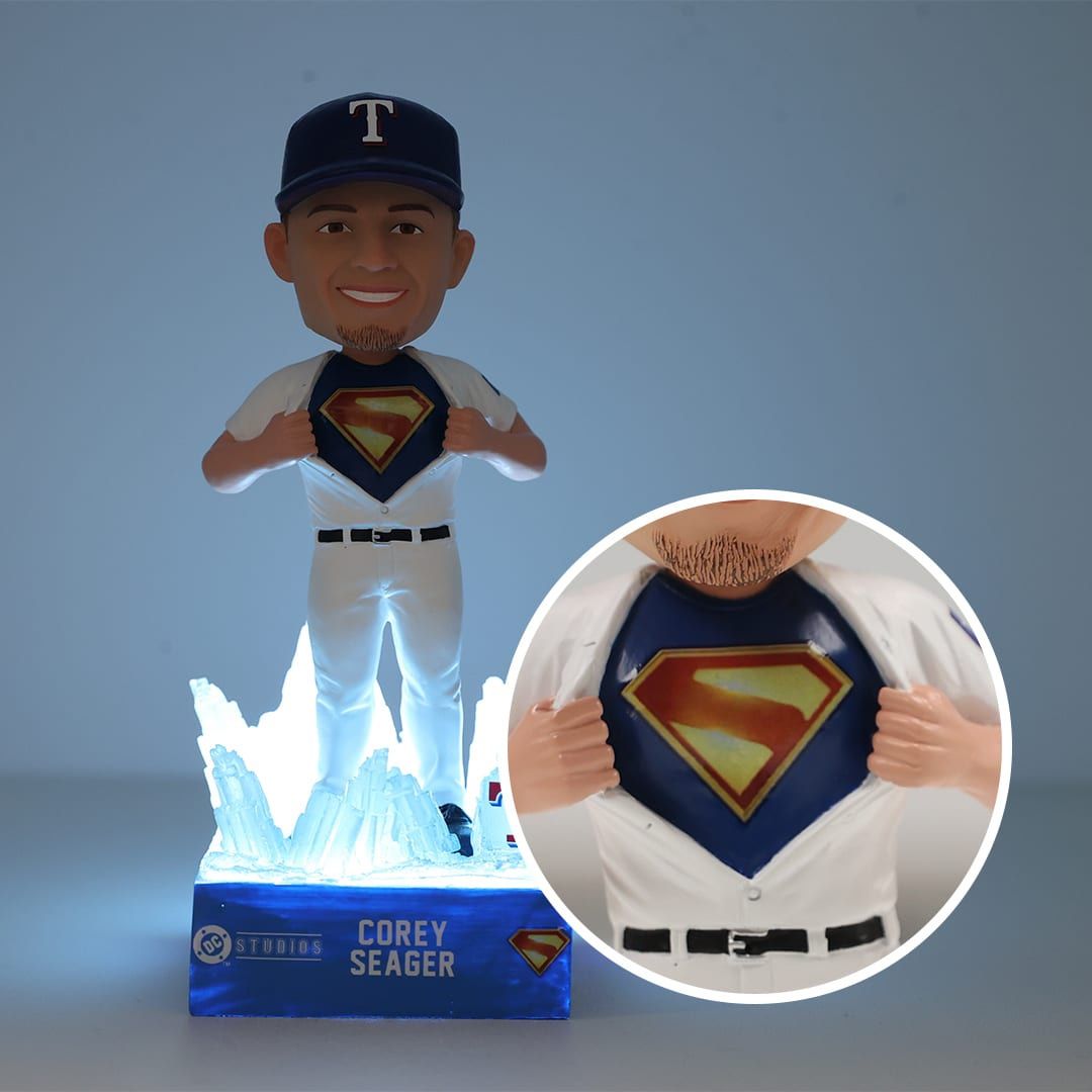 TIGERS AT RANGERS SUN | JULY 20 | 1:35 PM SEC 233 ROW 6 SEAT 1-4 SEC 234 ROW 7 SEAT 1-4 $75 EACH ☆ ( COREY SEAGER SUPERMAN BOBBLEHEAD INCLUDED )
