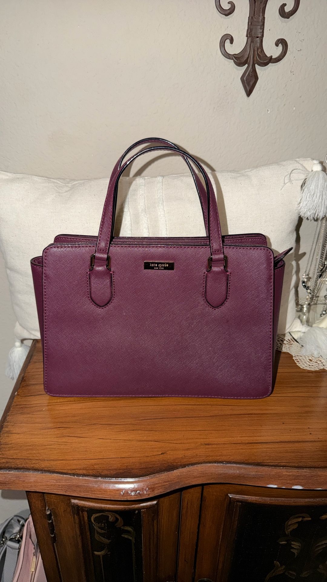 This bag is an absolute mint condition. Beautiful eggplant color leather is in great condition comes with long strap