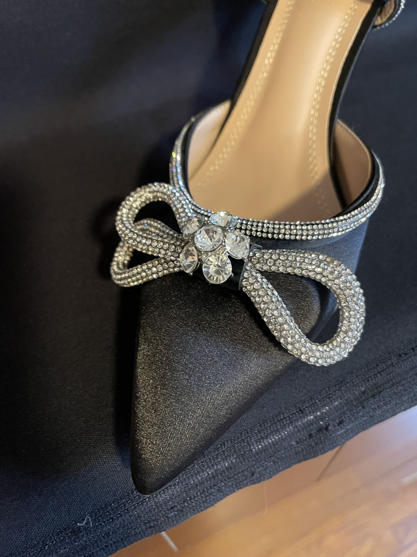 New Hayixia Crystal Diamond Bow Stiletto Heels Black sz 41 Women's size 10.5, I’m located in Normal Heights 92116