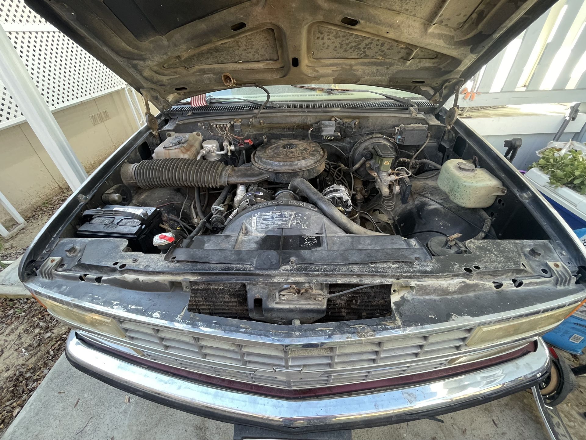 Chevy c 1500 305 small block Runs and drives ish Is squealing but have figured out the problem serpentine belt Drive shaft snapped needs fixing (but still drives drove it from Bakersfield back to my house ) Back shocks need fixing (manageable to drive not to bad) 300000 miles rebuilt engine around 200000 It’s looks like a hunker but the type of truck and style of it is hard to come by everything from the rims to the the steering column is original except minor parts here and there strong engine sat for some years and when I came back to it fired right up Replaced water pump, battery, alternator, spark plugs, pulley arm bearings, tires, routers, breaks Only reason I’m not driving it or fixing it is rent is here got dealt a bad hand with my checks swear HR will be the end of me but yeah my lost your win
