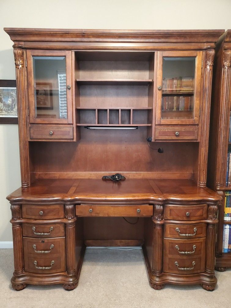 Dimensions: 68" x 26" x 84" (LxWxH) Extremely high quality hardwood study table. Original value is $5k. Would need at least 3 people to lift. Need to have a truck or trailer to pick up. In good condition, just minor scratches. Great addition to office or library room.
