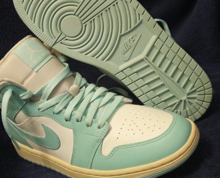 Product Details: Brand: Nike Model: Air Jordan 1 Mid Colorway: Light Dew / Sail / Muslin Style Code: BQ6472-132 Condition: Like New (Worn once or twice) Original Retail Price: $125 USD Sizing: US Women's: 10 EUR: 42 UK: 7.5