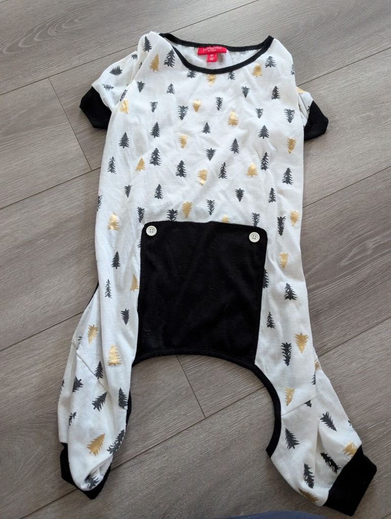 adorable pet pajama with black and gold Christmas tree design. Worn once. I did wash it. Also selling women's and men's PJ pants with same pattern. Pick up between Higley and Elliot