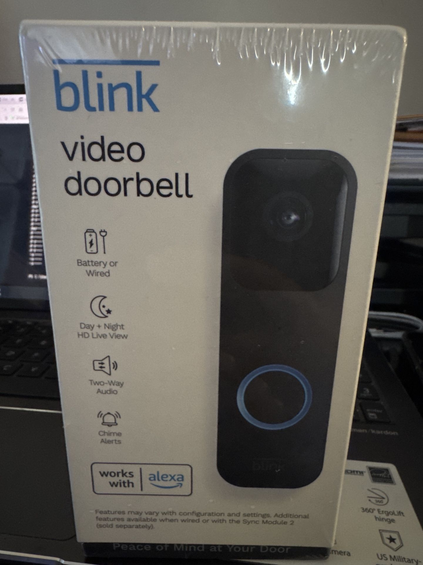 πΉ Blink Video Doorbell β New Sealed Works with Alexa Brand new Blink Video Doorbell still sealed in box. Great smart home security upgrade. βοΈ Battery or wired installation βοΈ Day & night HD live view βοΈ Two-way audio βοΈ Motion & chime alerts βοΈ Works with Alexa Perfect for monitoring front door, packages, or visitors from your phone. Easy setup with Blink app. π° $55 OBO (Local pickup preferred β serious buyers o