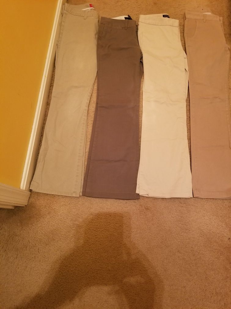 Five (5) pair of girls pants, size 0, 1/2, 5. Brands are Banana Republic, Express and Dickies. Pair of blue jeans not included in the picture.