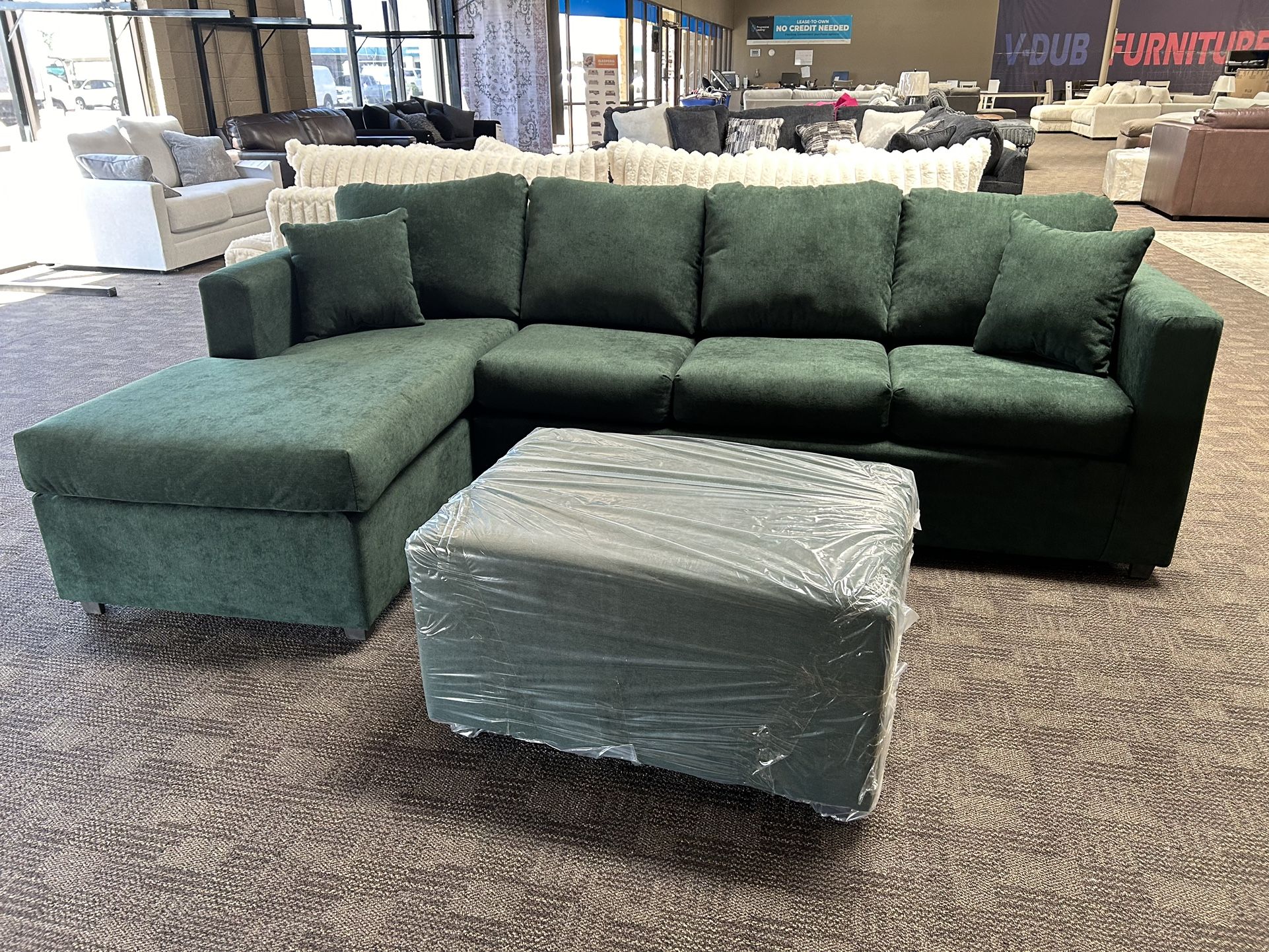 Forest Green Sectional W/ Ottoman