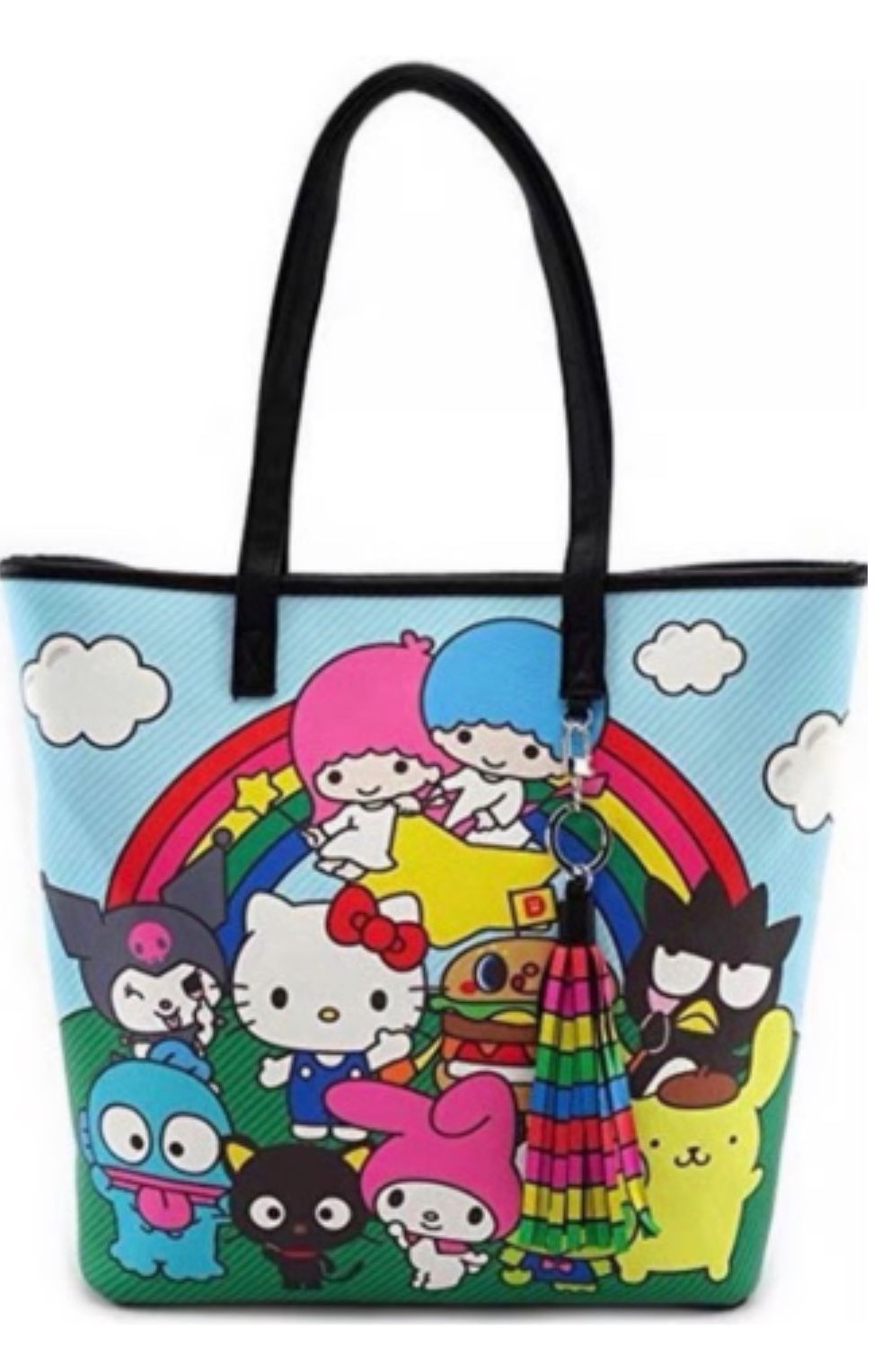 Loungefly Sanrio Hello Kitty & Friends Rainbow Purse Tote Brand New with Tags in Original Packaging ORIGINAL SOLD OUT NWT Loungefly Hello Sanrio Hello Kitty and Friends Rainbow Tote Purse W/ HEART LOGO Hello Kitty Sanrio Character Rainbow Tote Purse: A rainbow of bright colors and favorite Sanrio characters adorn this fantastic Hello Kitty Sanrio Character Rainbow Tote Purse. How fun! The faux-leather tote bag measures approximately 17-inches wide x 14-inches tall x 5-inches long and features printed details and handles. Selling online for over $400 Only asking for $125