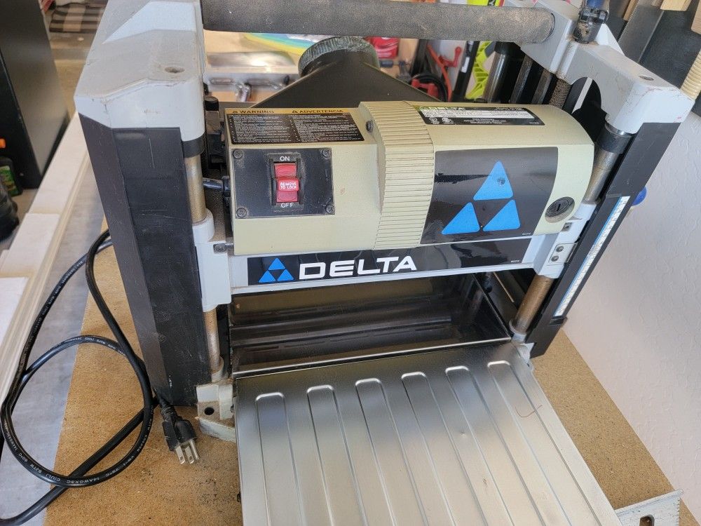 Delta 12 1/2 " X 6" portable planer Used but in great condition. Model 22-560 Blades are in good condition Pick up 114th Ave and bell $175 obo Delta Model 22-560 is a 121⁄2″ (317mm) Portable Planer. It has the following cutting capacity; 121⁄2″ (317mm) width, 6″ (152mm) thickness and 3/32″ (3mm) maximum depth of cut. Features include; basic machine with powerful 15 amp, 120 volt motor, dust chute, two-knife cutterhead with double-edged reversible knives