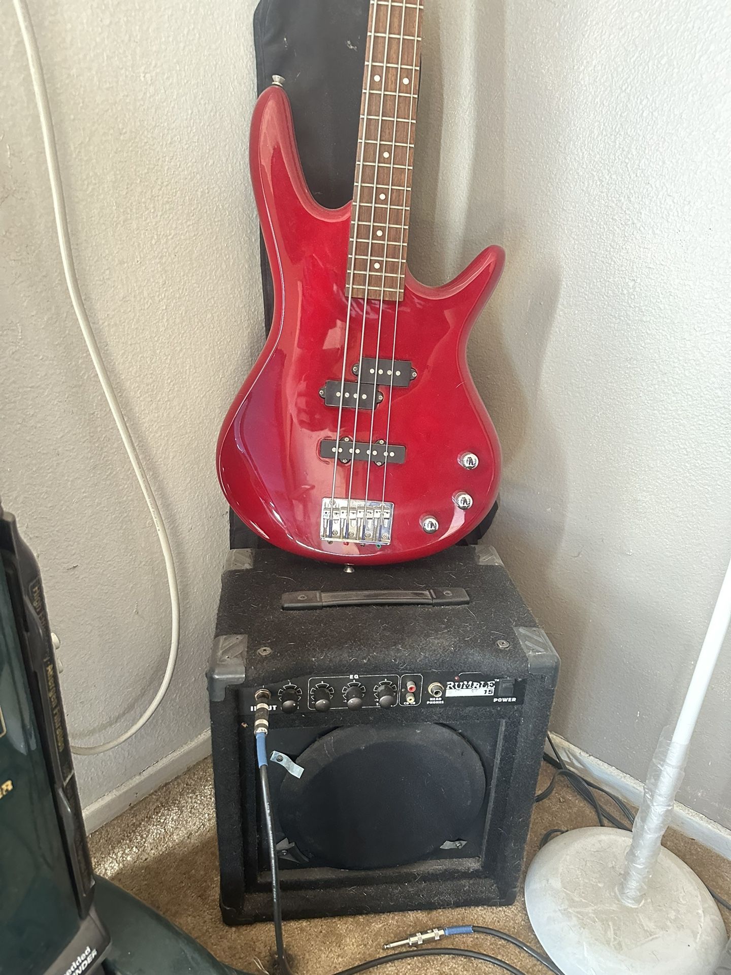 Bass guitar willing in throwing in the amp for like 30$ both like new in perfect condition sounds great just need space send offers willing to let it go cheap if price is right!!
