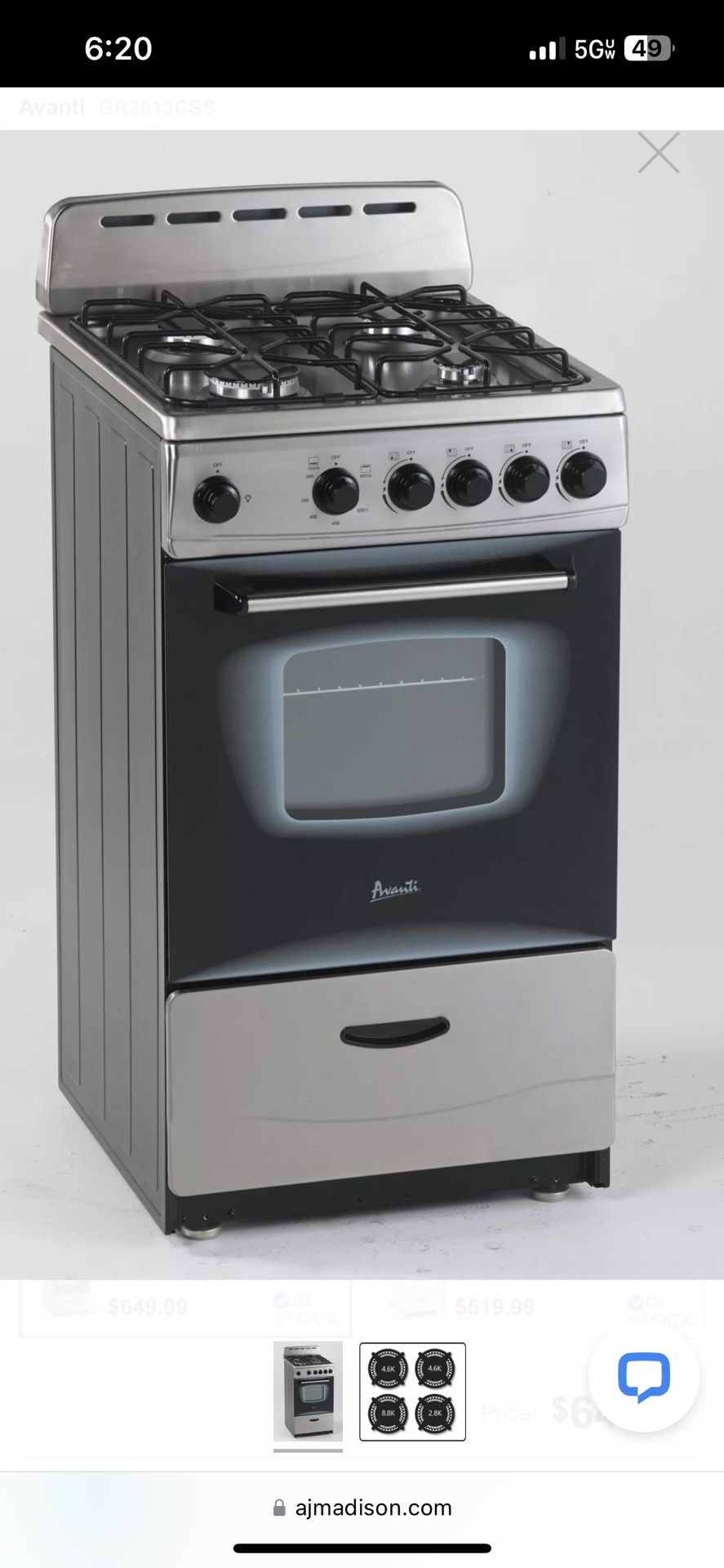 20” Gas Range