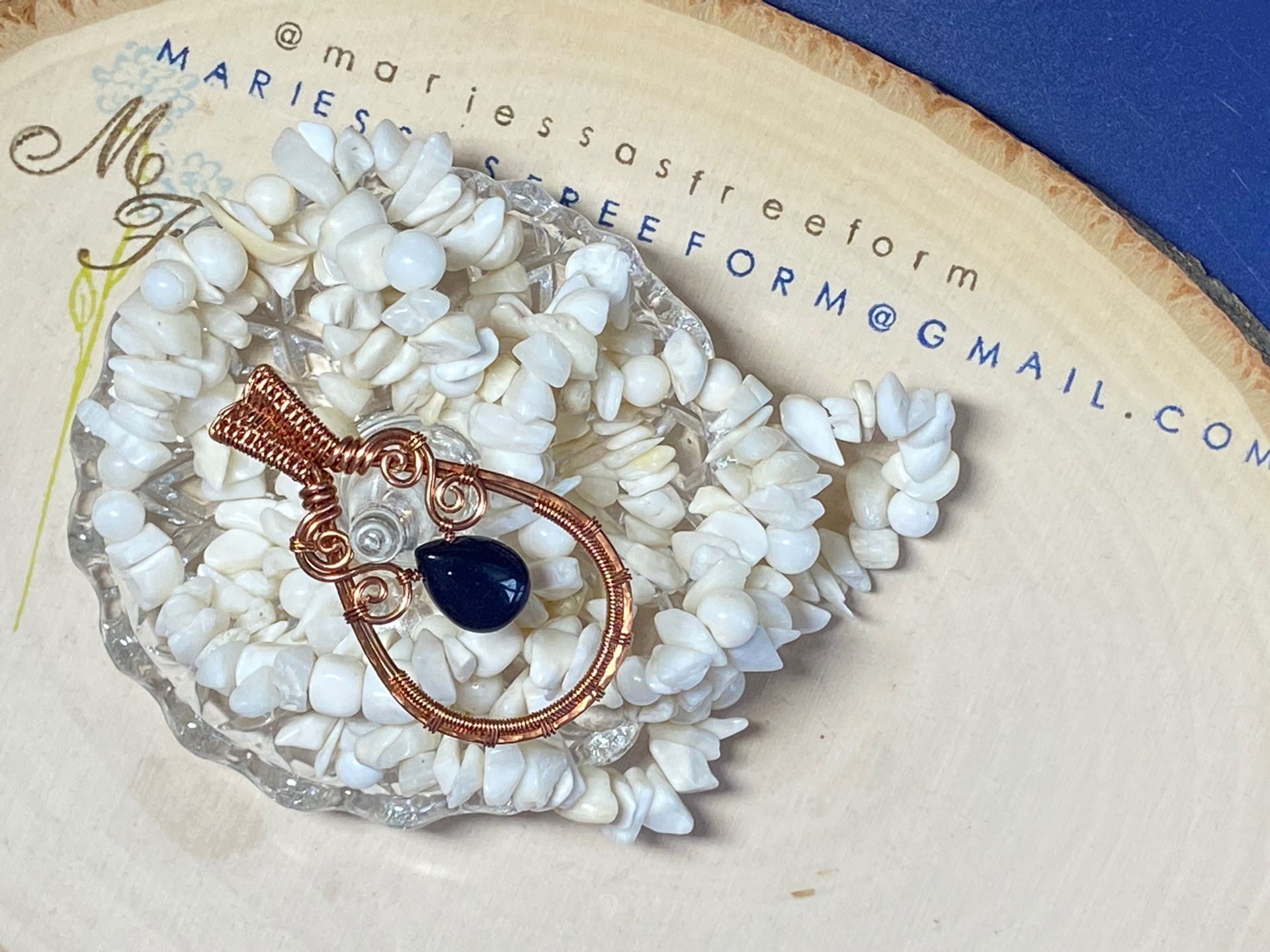 This lovely pendant is about 2 inches tall, comes on a handmade black cord 19 inch necklace and wrapped in a pretty little handmade box. Message me if you have any questions, I'm always happy to help Copper and Silver jewelry will oxidize (darken) over time, but can easily be made bright, shiny, and beautiful again by gently rubbing with the polishing cloth provided. This beauty comes in a handmade box ready for gifting.