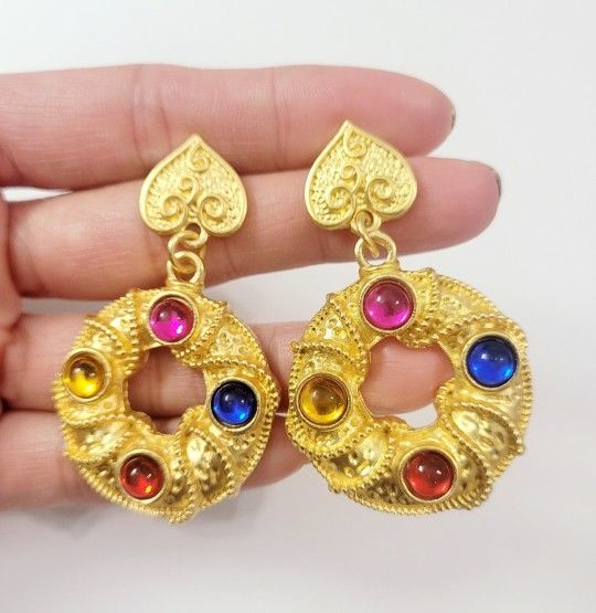 Gold drop dangle with multicolored women's earrings. Vintage style. Gold plated. Length 2.5" long. New item.
