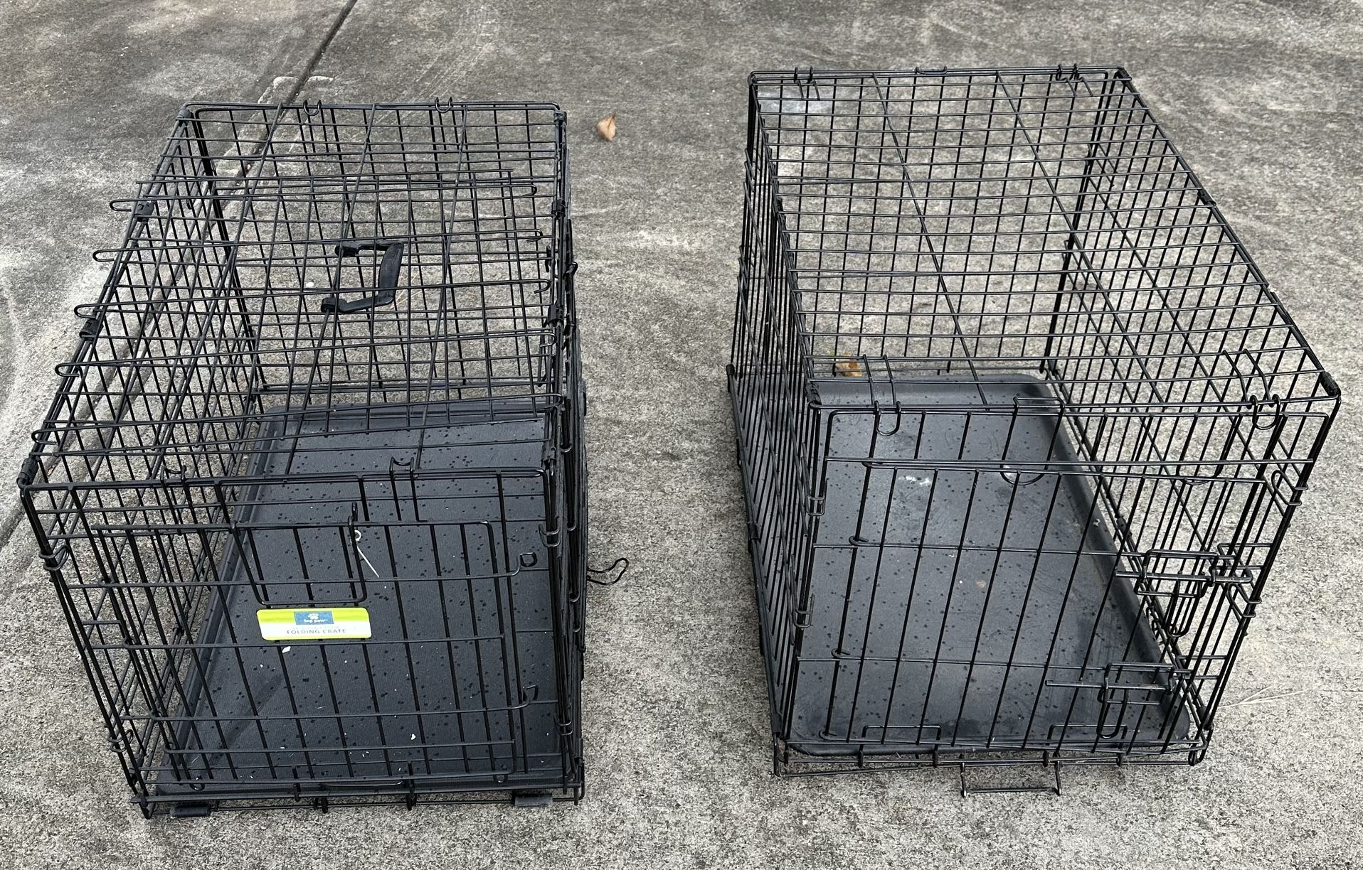 Two dog crates with one being new (never used as it was stored in garage) and the other seldom used. Approximately 17” x 24” x 19”. Check out the price for a new Toppaw Crate online and you will see these may be a good deal for your dogs. Two crates will be sold for this one low price.