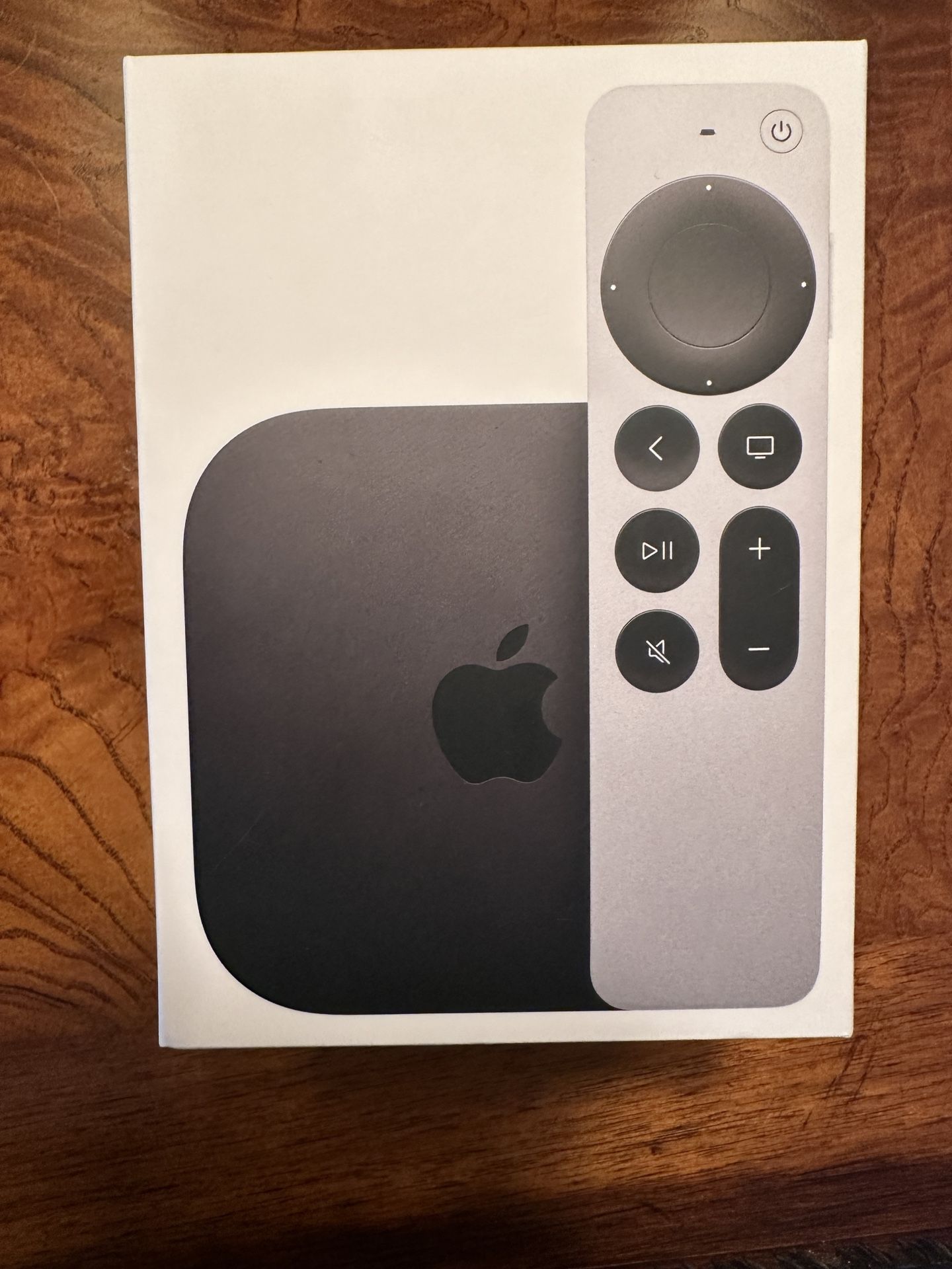 Brand new, never opened, still sealed in box. This is the latest Apple TV 4K (3rd Gen) with: • 128GB storage • Wi-Fi + Ethernet model • Siri Remote with USB-C • Supports 4K HDR, Dolby Vision, and Dolby Atmos • Works with AirPods, iPhone, HomePod, and more • Can be used as a smart home hub (Thread-enabled) Retail is $199+ tax — letting it go for $100
