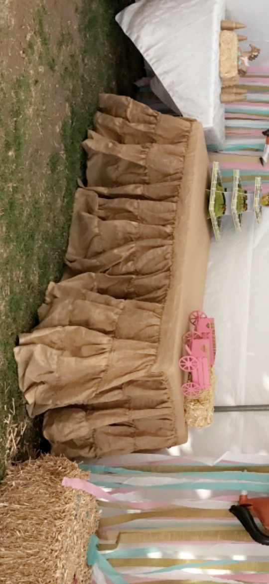 6 runners 48 Chair covers 3 dozen Chair bows 1 main table cover