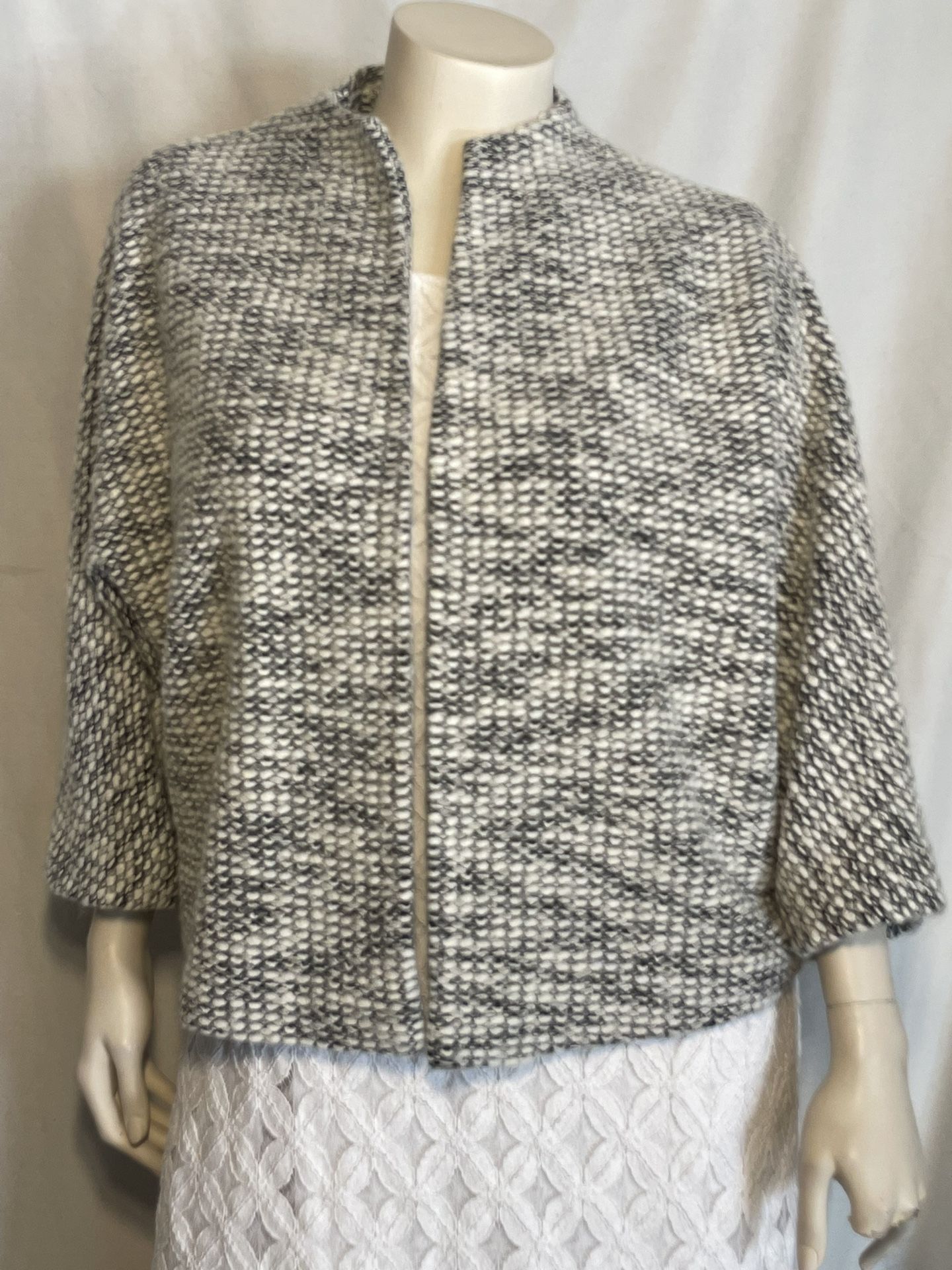 Black, white, and gray coat ladies size extra large (16/18). Three quarter length sleeves. No collar, no buttons, no pockets. Cotton blend. Location near Greenway Road and 40th Street Phoenix, Arizona. Pick up only.