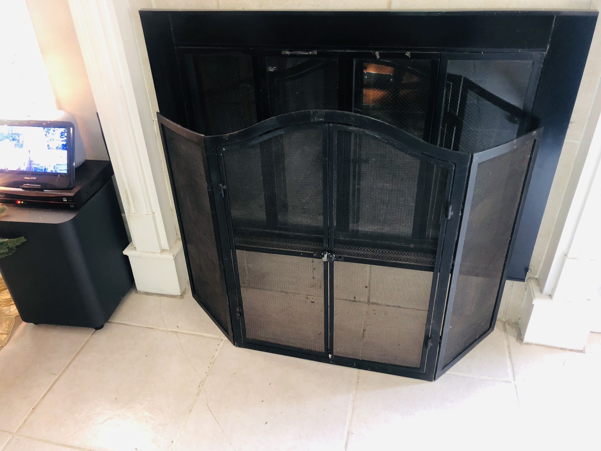 Black Arched Pain Three Fold Fireplace Safety Front Screen 40" x 30"x 10 Wide Preowned