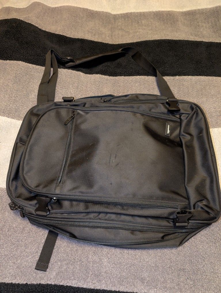 This is a carry on bag!! It can be used as a back pack. Or the backpack straps can be zipped away and the duffle bag strap attached. This is TSA regulation carry on size when fully packed. The back pack aspect makes it very convenient. I am asking $40. It is Amazon brand!