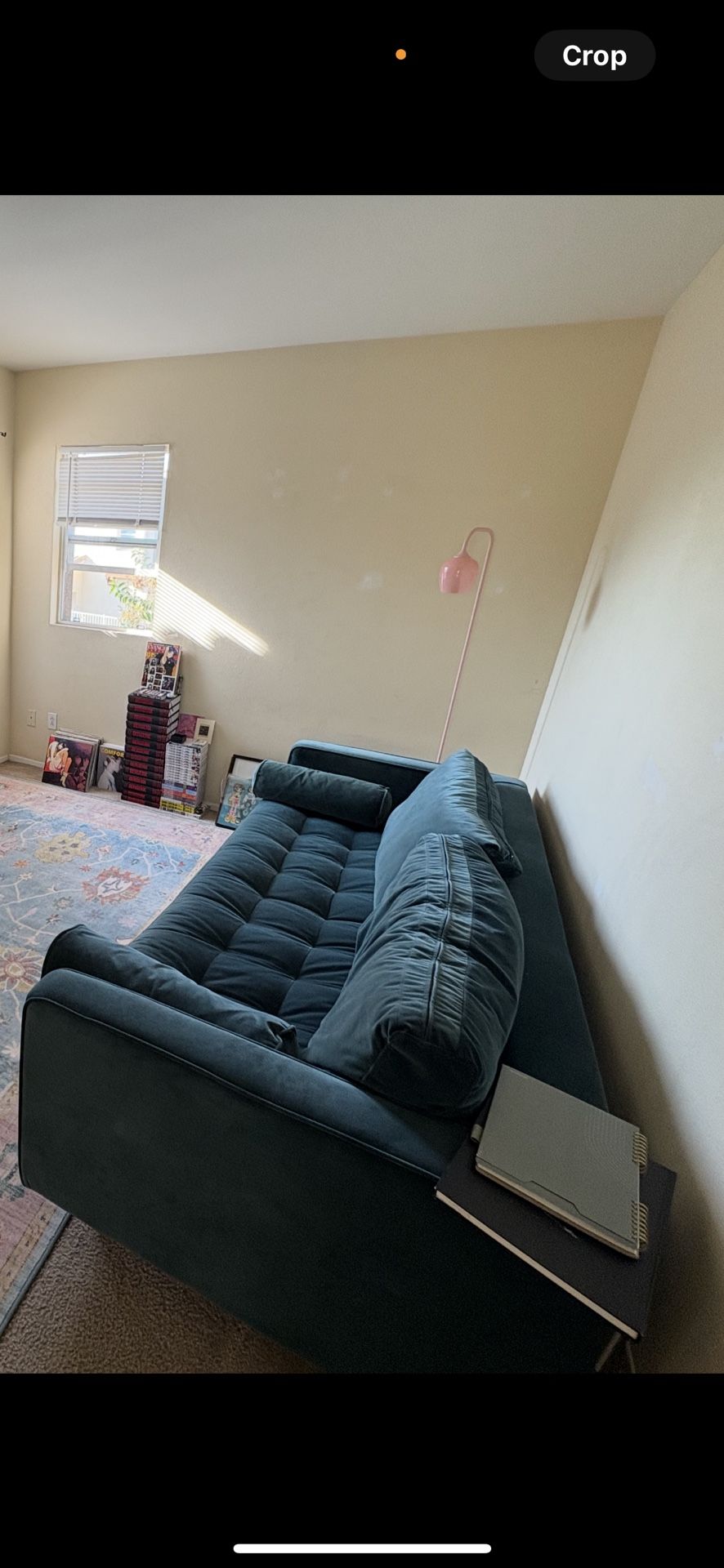 Article Velvet Green Couch Used but in great condition! Seats 3 people!