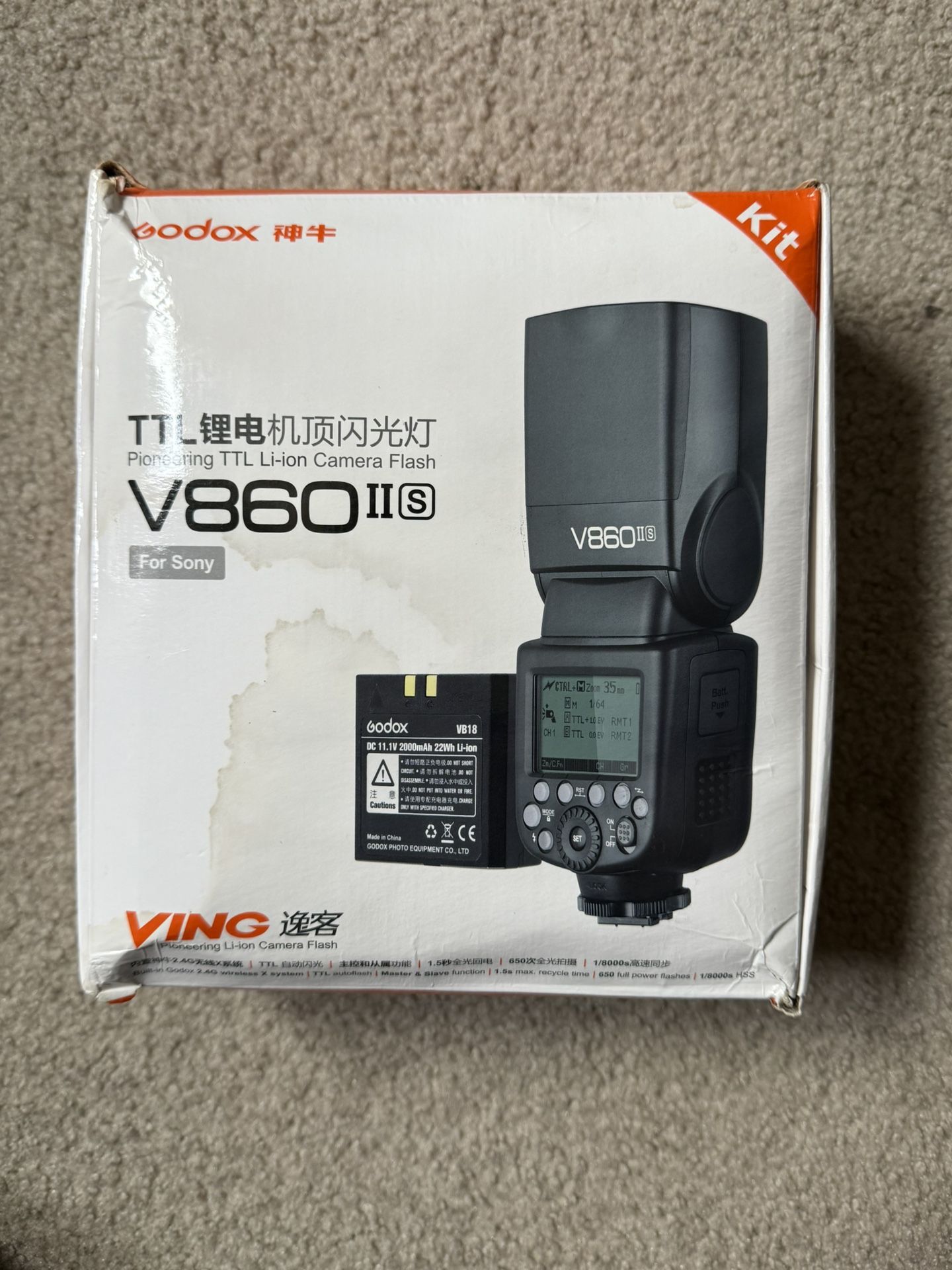 Godox V860iis flash for Sony cameras. Brand new. Bought it and never used it. The box looks beat up from shipping. Series inquires only. Cash or Venmo.