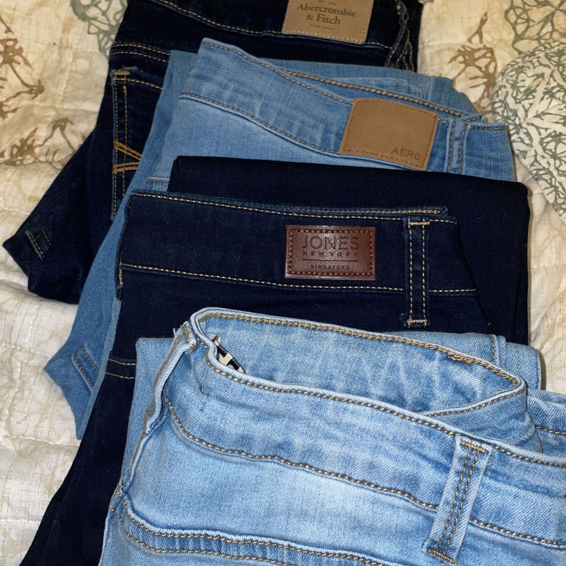 4 jeans for $30, all were used once if not at all Abercrombie & Fitch size 6R Aero size 8short Jones jeans size 6p Encore size 7
