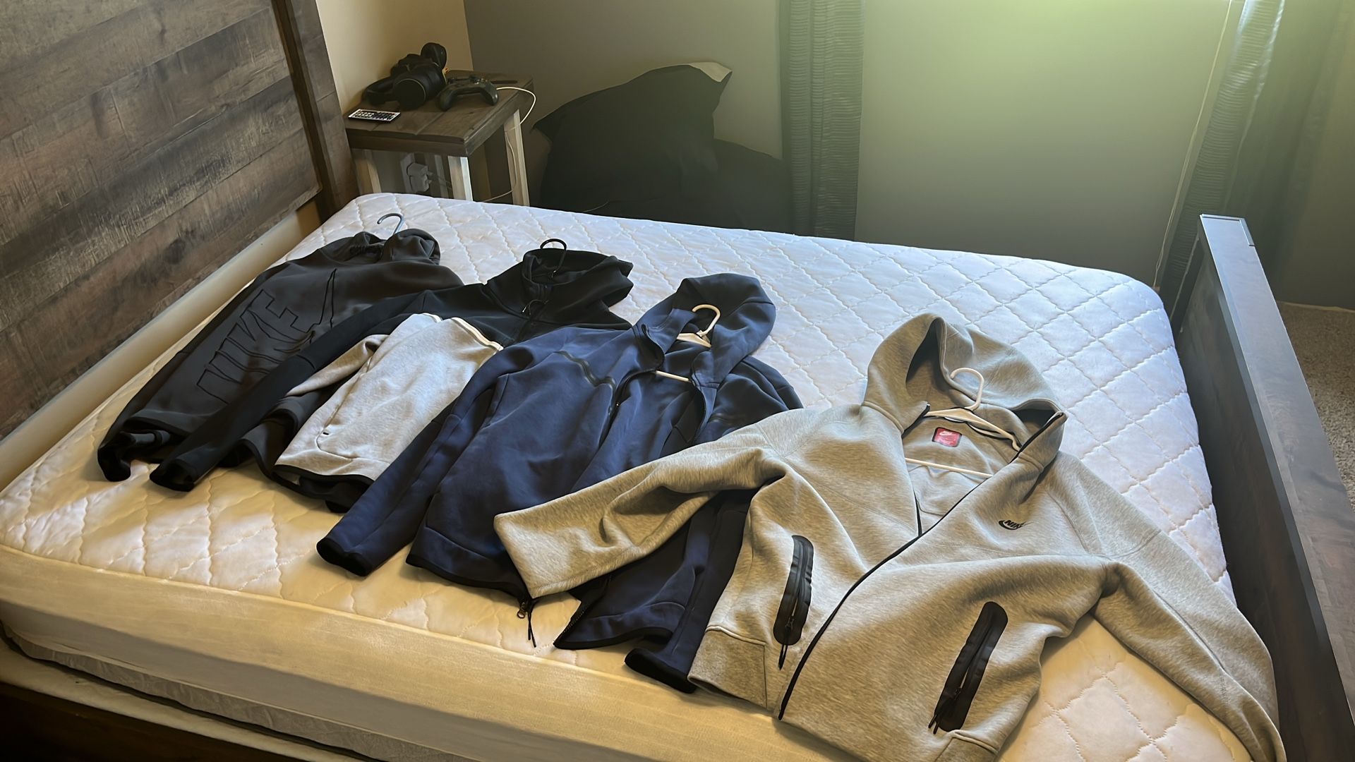 The 2 older style techs are my favorite just don’t wear often the newer grey tech I’ve never worn same with sweatshirt style dark grey selling all together all are size L