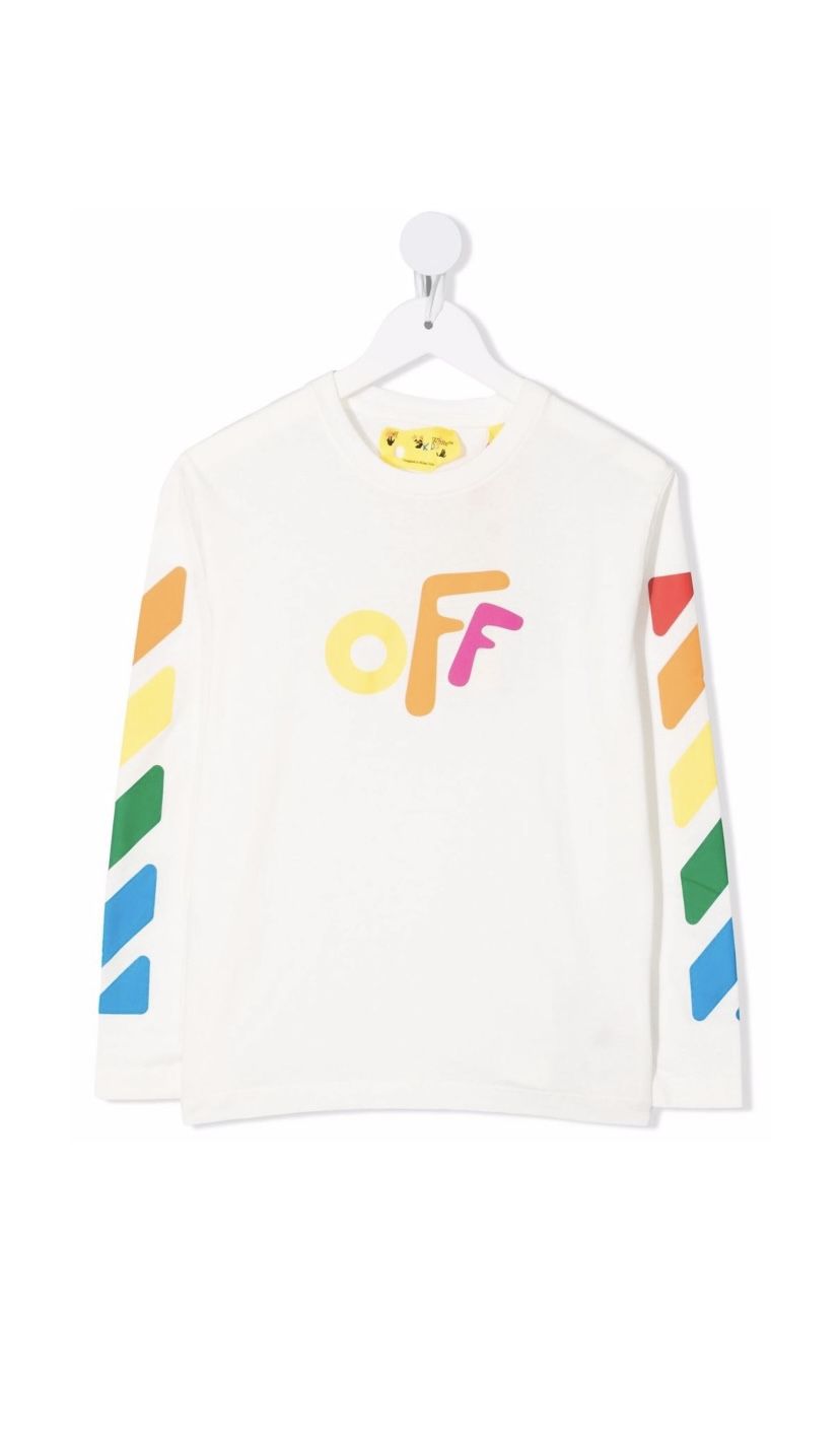 Off-White Kids Longsleeve t shirt Size 6 Light Grey worn once White/multicolor Worn twice