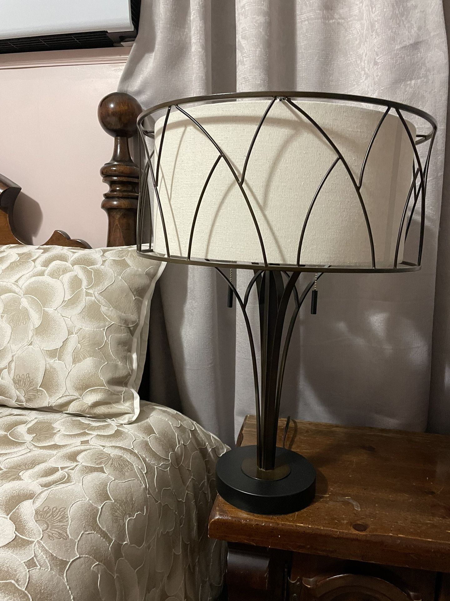Two Table lamps with USB port, 26”high, shade 71/2”high x 16” wide, metal construction, twin pull chains. Excellent condition.