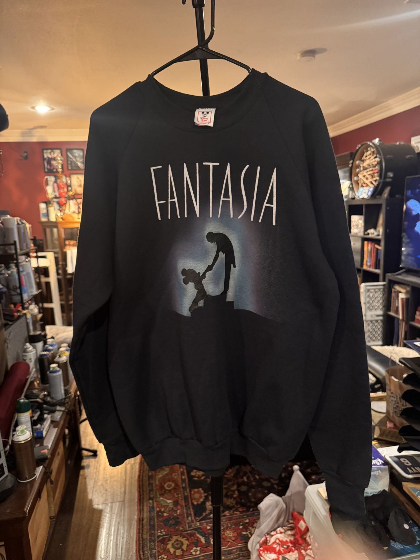 Hello, I have this awesome vintage and super rare Disney Wear / Fruit of the Loom blue Sweater made in the U.S.A. Size XL, but can also go as a large. FANTASIA theme. Found a few similar ones selling for a lot more. Very gently washed. Is thick and made with quality! No tags, has never been used, and still new! Not sure what year, but I believe 1990s. Came from an estate sale. You will not find this in a better condition and for a better price! Selling for a sweet price !!