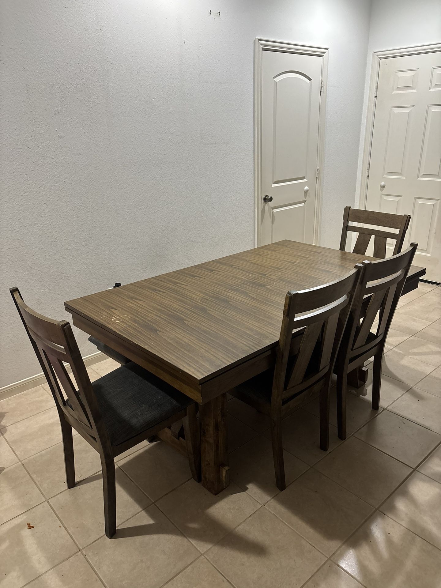 Very used in a home with a toddler! The table does PULL OUT and become longer! Comes with bench!