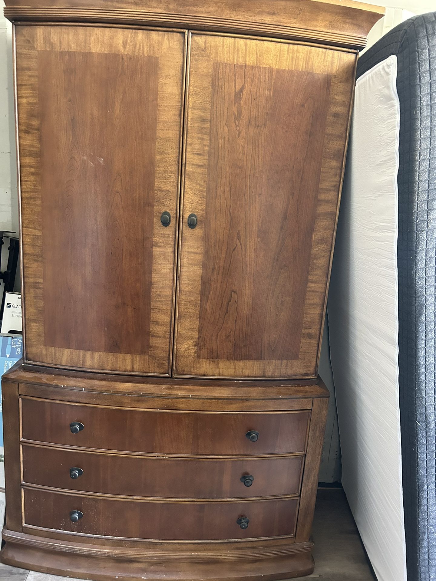 Used wooden armoire dimensions are 51 inches wide 24 inches deep and 83 inches tall. Very heavy you will need a truck comes in two pieces. Location is 101 and Chaparral Rd Scottsdale. $40