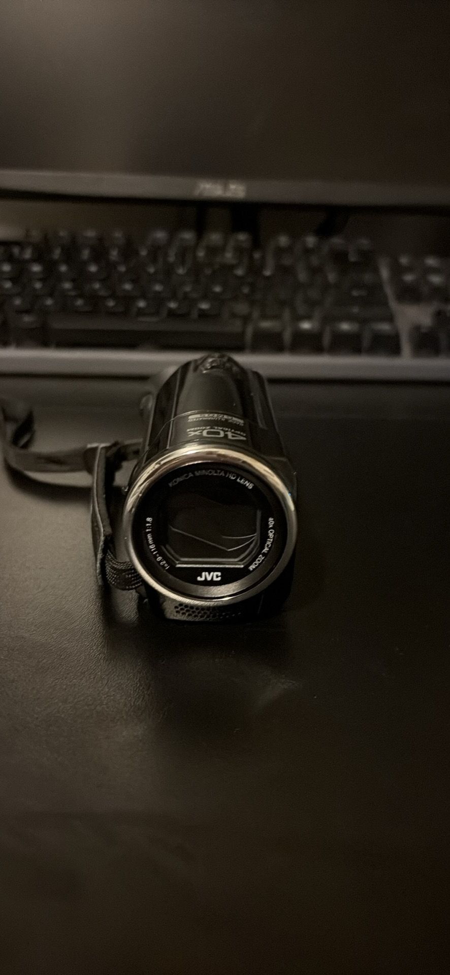 JVC Everio camcorder in great condition. Works perfectly and records clear video. Compact and easy to use — great for travel or beginner filming. Includes charger and battery. Barely used.