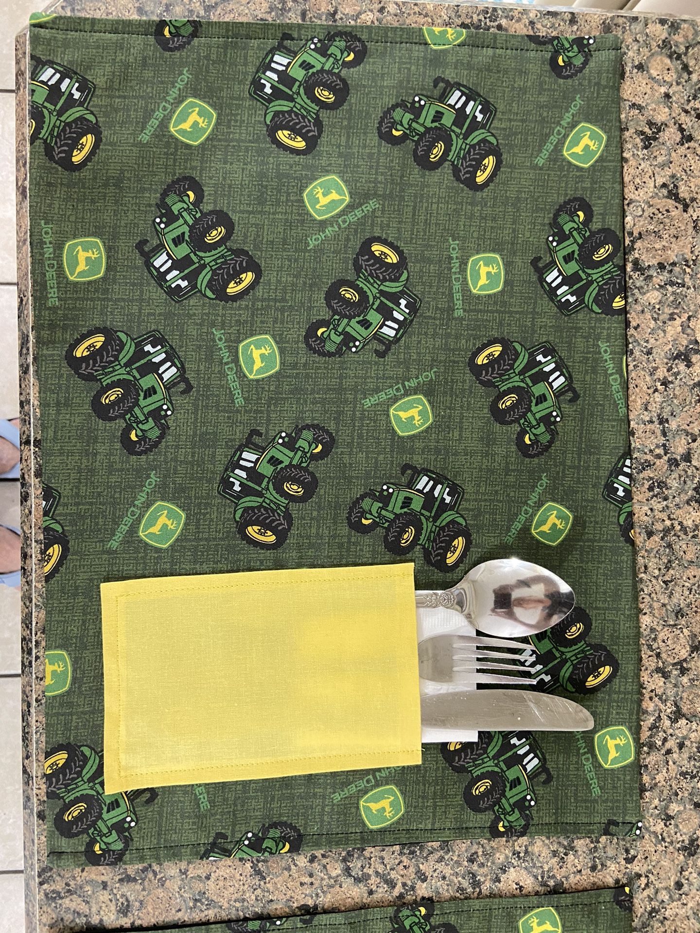 Three layer hand made placemats with a pocket to hold your napkins and silverware. You can wash them and iron them. $20 per set and I will ship them for free.