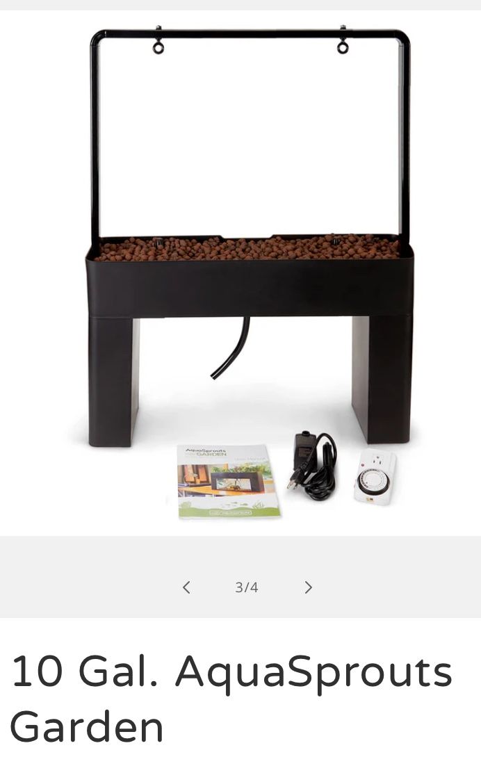 Imagine having a living ecosystem to grow, learn and discover with- all in your own home. The AquaSprouts Garden includes everything you need to turn any standard 10-gallon aquarium. Into a self-sustaining ecosystem using the beauty of aquaponics. In the box AquaSprouts Garden custom-molded, single-piece Garden bed snaps together easily with the supporting legs, and comes in a modern and black matte design.