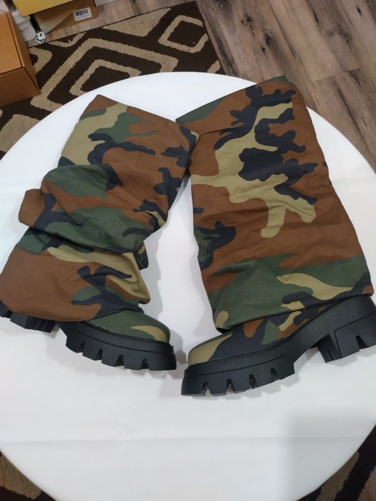 The sexytag Women's Metallic Boots are a trendy and stylish option for women looking for a unique and eye-catching footwear choice. These slouchy foldover platform boots feature a round toe shape, making them versatile for both party and casual occasions. The camouflage color adds a modern touch, while the combat style and standard shoe width provide comfort and durability. With a synthetic insole material and cloth upper, these boots are perfect for the fall and spring seasons.