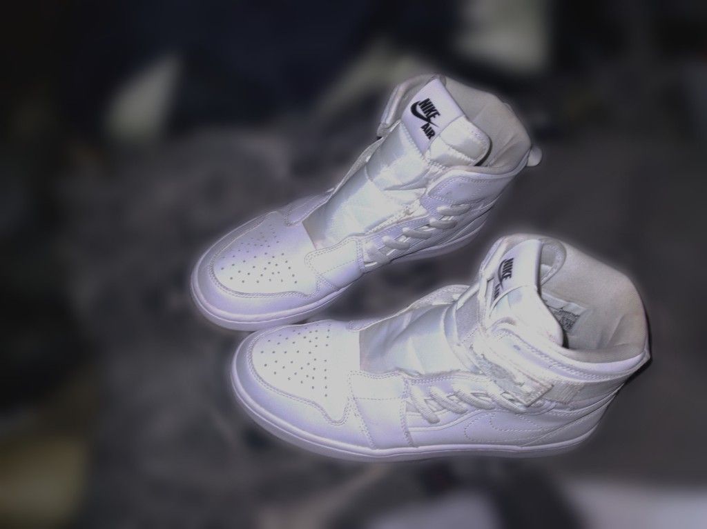 New All white crisp Woman's Air Jordans 1 retro with the side lace. Size 8.5 (item is cross posted)