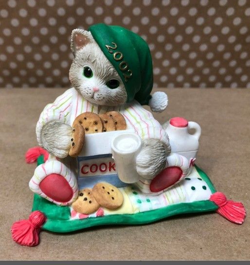 2002 "HAVE YOURSELF A MEOW-Y LITTLE CHRISTMAS". Figurine is made of resin. Looks nice and new condition with no cracks, chips, or paint problems.