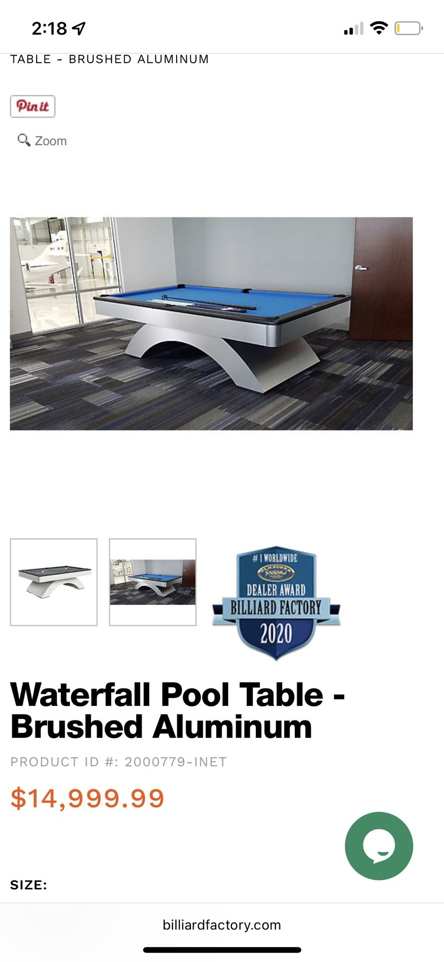 Olhausen Waterfall Pool table 8.5ft Stainless Steel