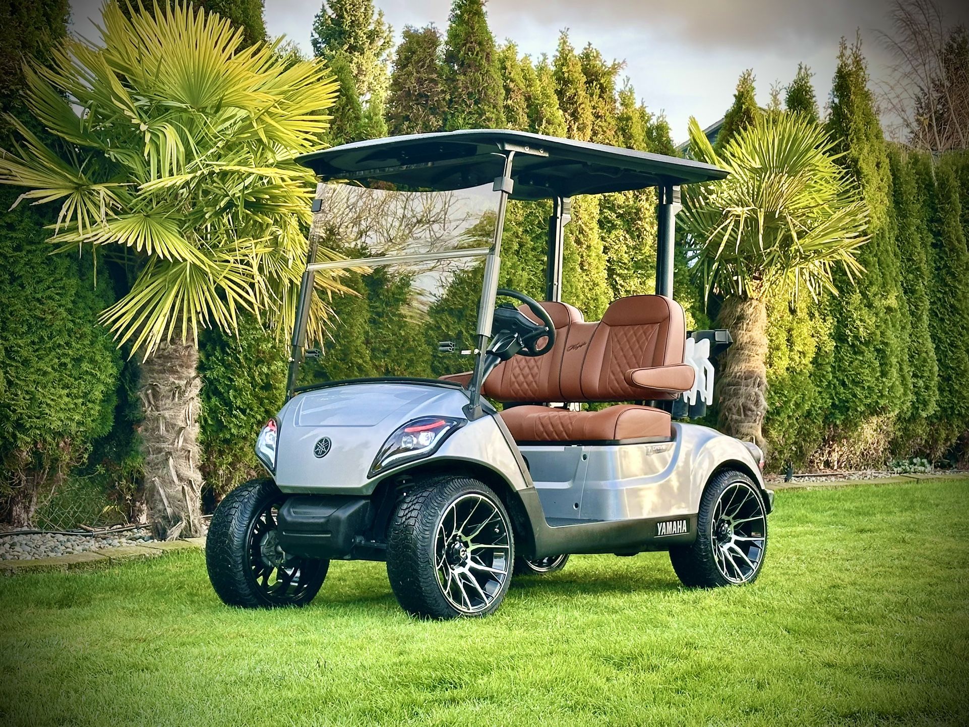 2019 Yamaha Drive 2 Golf Cart β³οΈ 51.2v Electric β‘οΈ Features; Navitas 600a 4k motor π₯ ($2100 value) Top speed is 36mph!π₯ποΈ! Does burn outs! β οΈ On the fly programmer π¨βπ» connect to Bluetooth for diagnostics π¨βπ§ NEW 100ah lithium π battery pack! 35-40 mile range! Onboard 18amp charger (charge anywhere with an extension cord.) LED Street legal light kitπ¦; high beams, signals, horn, hazard. W/ RGB Bluetooth running lights NEW plush brown diamond stitched seats 2x Sand seed bottles Premium black top NEW MODZ 15β wheelsπ NEW tinted flip windshield USB C 3.0 Port π± 12v port LCD State of charge meter NEW 400amp solenoid 6 pack cooler π» Local delivery available! π