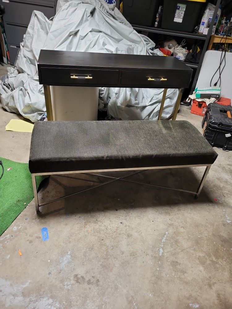 Vanity 16" deep 47 1/3 wide 33.5 tall Bench 49 wide 18" deep 19" tall Lightly used been in storage reconditioned Bought at Ross about a year a go then moved and never used Paid 135 for Bench 140 for vanity Open to reasonable offers !!
