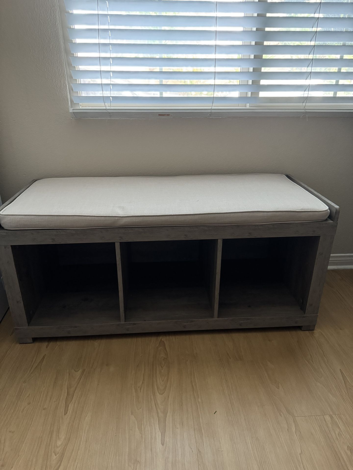 Per the title, this is a great little storage/cubby bench that fits well in entry ways Everything is very clean. Should have sold this a while ago as it didn’t see much use since it didn’t fit well in my own entry way 44.5 x 18 inches