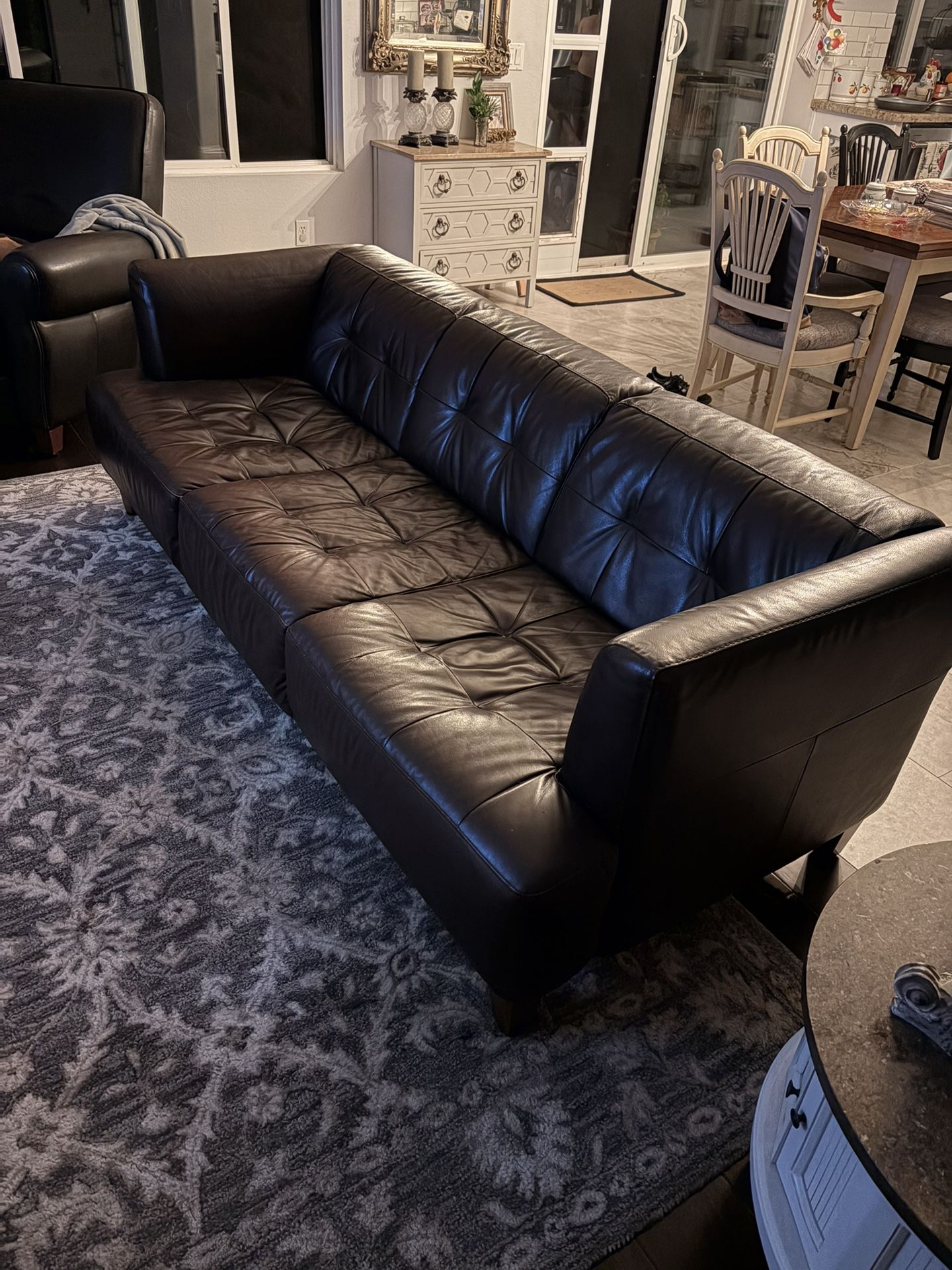 Chocolate colored leather sofa. Purchased at Macys. 84” wide 29” high 35” deep Any questions please ask. $225 obo