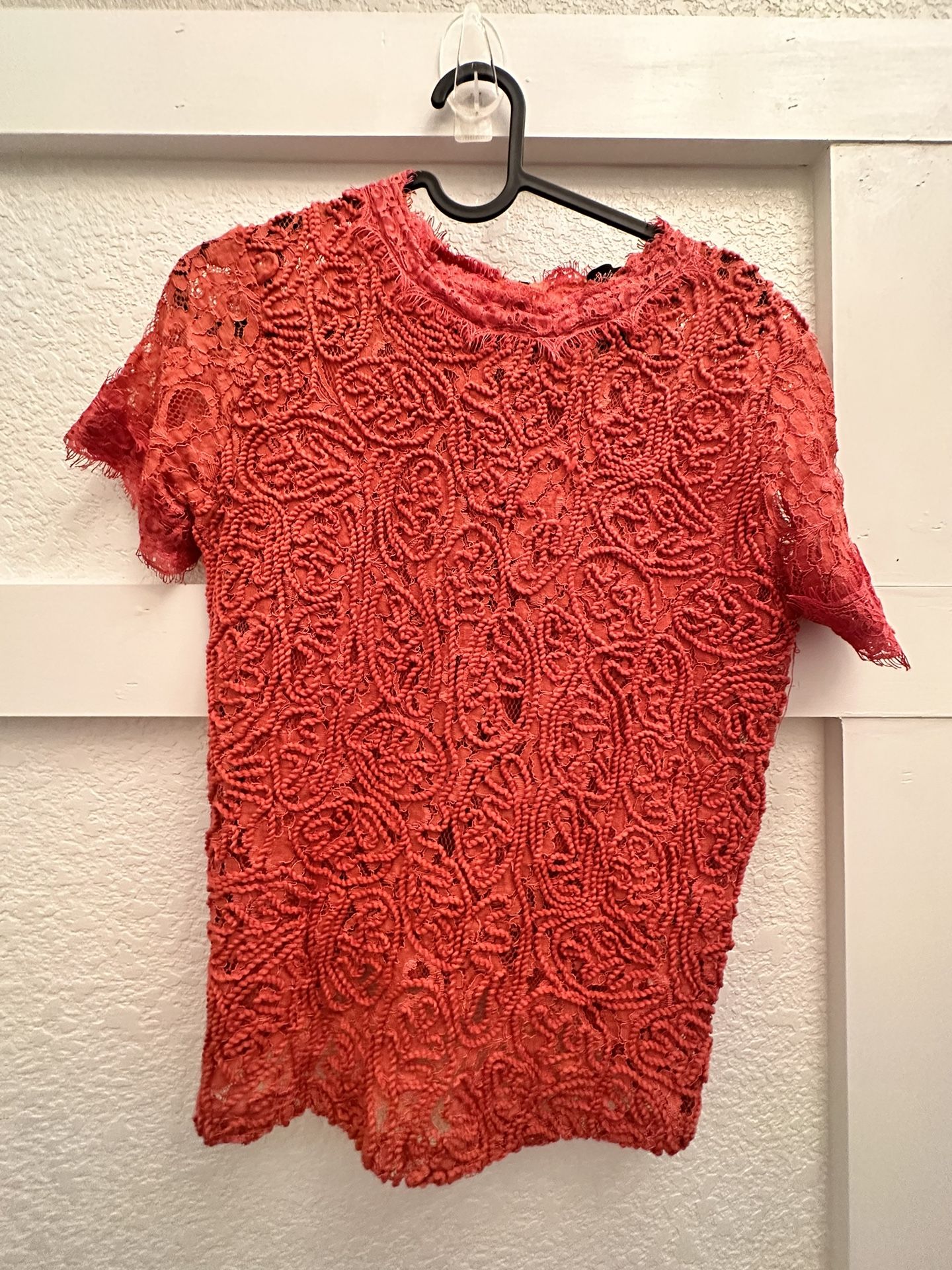 Whispers Size Large Women Blouse Rust Color Lace All Over And Zipper In The Back