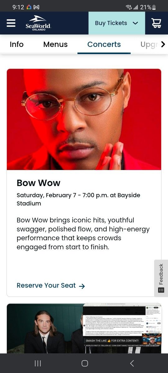Att: Saturday Bow wow concert 7pm Feb 7th Tickets include concert/parking/rides 3tickets available 35.00 per person . tickets will be sent emailed. Concert is not assigned seating so get to the area early for good seats.
